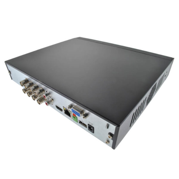 - 8 Video IN BNC, 2 Video OUT (HDMI / VGA 1920×1080), Audio IN / OUT (RCA), 2 USB 2.0, RS485 (control PTZ), 1 RJ-45