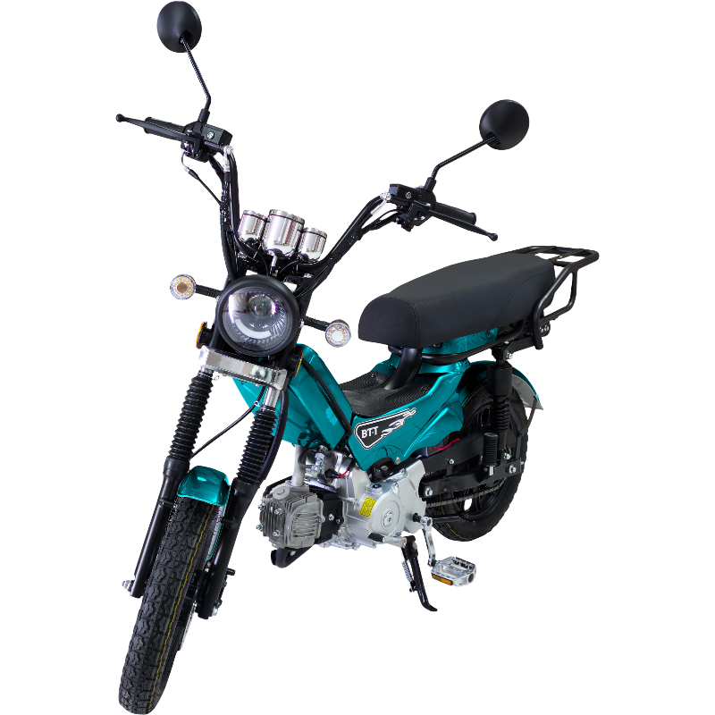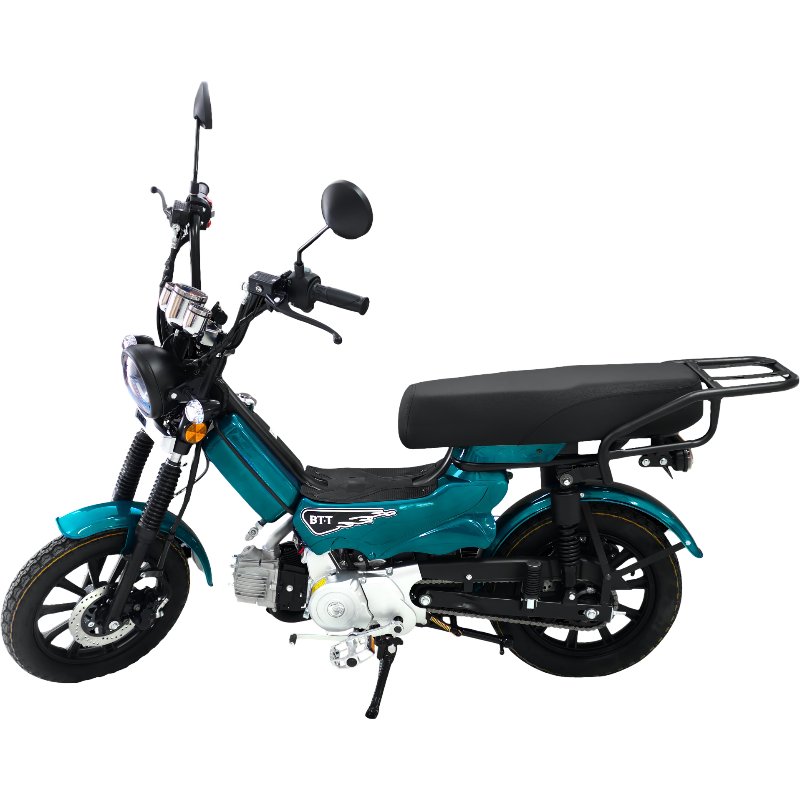 Esta es una bicicleta asistida por motor, equipada con un motor monocilíndrico de cuatro tiempos, refrigerado por aire, con cilindraje de 99CC o 110CC. Su sistema de arranque combina encendido eléctrico y arranque por pedal, y utiliza un embrague centrífugo de zapata. La transmisión es semiautomática de 4 velocidades, permitiendo una velocidad máxima entre 40 y 60 km/h, dependiendo del CDI instalado.